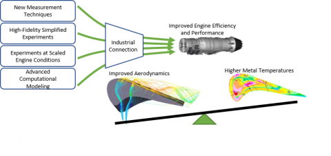 Experiments and high-fidelity computations were performed to explore how to better optimize these cooling configurations. New experimental techniques, such as the use of a high-speed infrared camera to measure the thermal load on a moving turbine blade, were developed and demonstrated, opening the door to a range of new research opportunities. Together, these predictions and data sets will help shape future industrial design practices as well as the next generation of engines to hit the market.