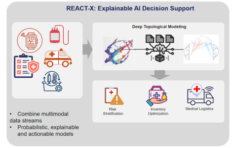 Objective: The objective of REACT-X is to deliver a decision-support tool that uses deep topological modeling to identify critical features that would enhance medical triage, identify patients requiring urgent life-saving interventions, and inform medical logistics needs. Specifically, REACT-X aims to help medics determine when to evacuate patients, how to allocate limited resources, and when to request timely resupply across distributed battlespaces. The project also seeks to provide providers at various levels of expertise with role-tailored recommendations, enabling more informed, faster, and more effective medical decisions that ultimately increase survival rates in prolonged casualty care scenarios.