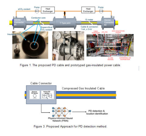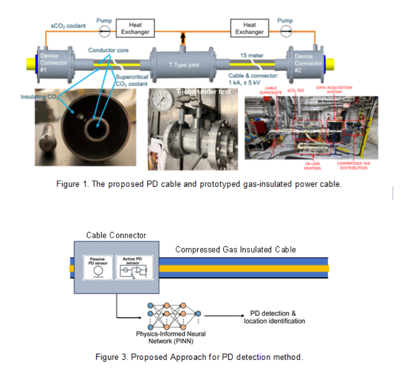 Innovation: This project introduces a compressed-gas-insulated high-voltage cable system with integrated partial discharge (PD) smart detection capabilities. It leverages hybrid passive-active sensing circuits and a physics-informed neural network (PINN) for real-time PD detection and localization. The use of CO₂ as the primary insulation medium, combined with sensor-embedded smart connectors, represents a novel approach to improving reliability, safety, and altitude performance in aerospace power systems.