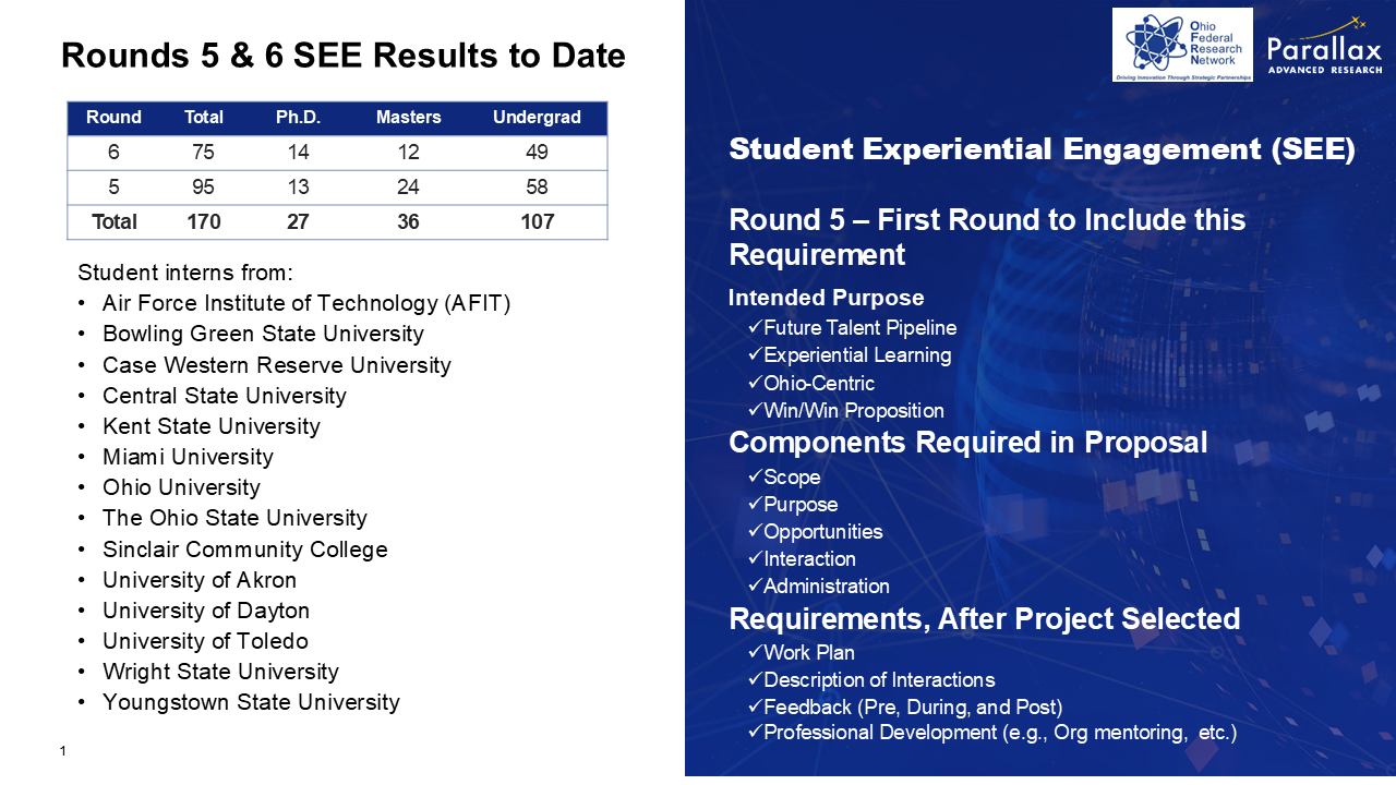- Enhancing university collaborations with Ohio-based industry to engage in innovation.